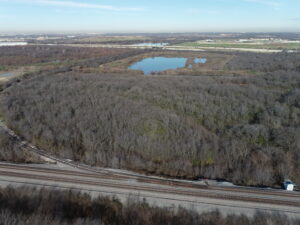 A local developer recently placed a conservation easement on this 53-acre tract south of Interstate 30 in Grand Prairie as part of their overall development plan. The preserved property is mostly floodplain area in the Mountain Creek watershed which flows into the West Fork of the Trinity River. Preserving this property, which includes a mixture of wooded areas and open water, will capture floodwaters and prevent flooding downstream, and serve as a refuge for wading birds and other wildlife. (Easement transaction completed in 2025.)